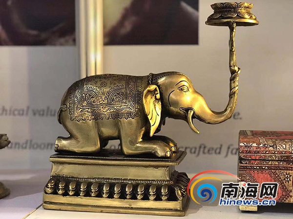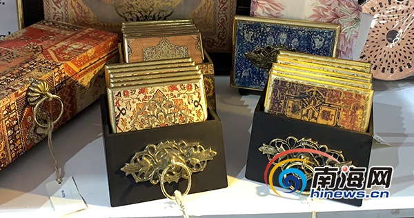 印度館里的純手工杯墊 南海網見習記者 鐘瑜 攝