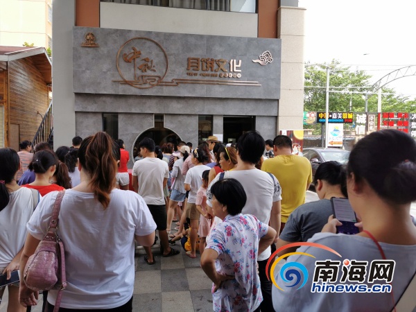 海口水晶宮月餅文化微型體驗(yàn)館門口圍滿了顧客。圖片來源:海南水晶宮