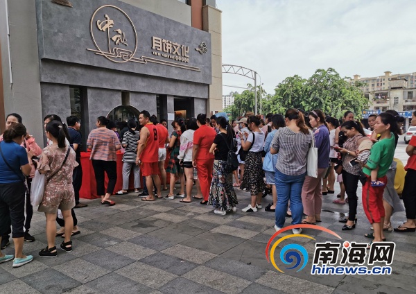 市民排隊(duì)選購、領(lǐng)取水晶宮月餅。圖片來源:海南水晶宮