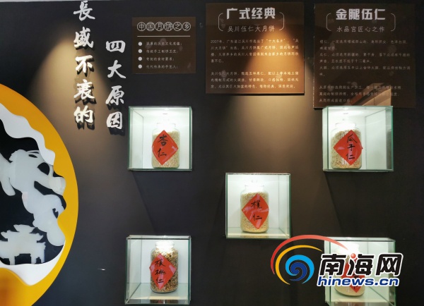 海口水晶宮月餅文化微型體驗(yàn)館展示了五仁月餅的主要原料。圖片來源:海南水晶宮