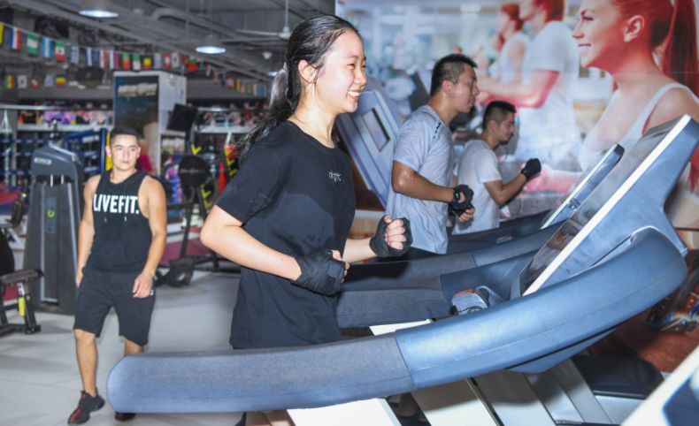 夜晚到健身房鍛煉成為眾多健身愛好者的選擇。海口日報記者 蘇弼坤 攝
