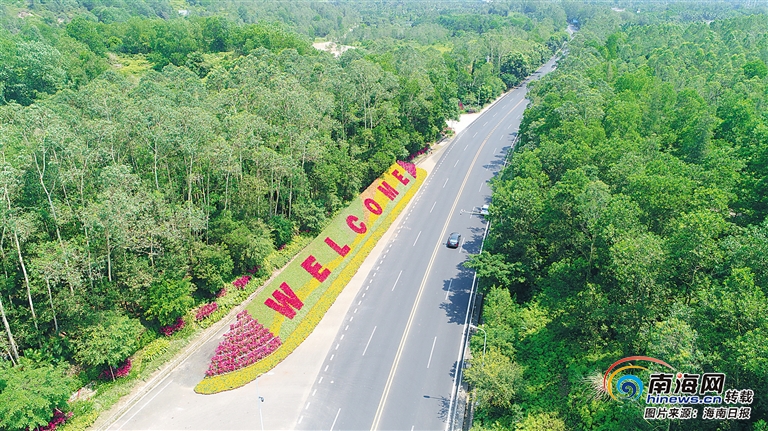 瓊海博鰲入口處,用鮮花擺放的“WELCOME”(英文“歡迎”的意思)字樣。 海南日報記者 袁琛 攝