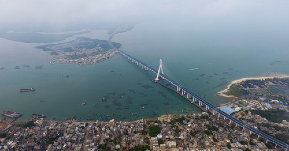 ↑無人機拍攝的海南海文大橋。新華社記者 郭程 攝