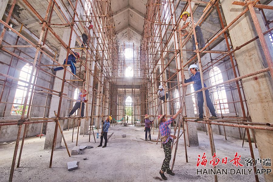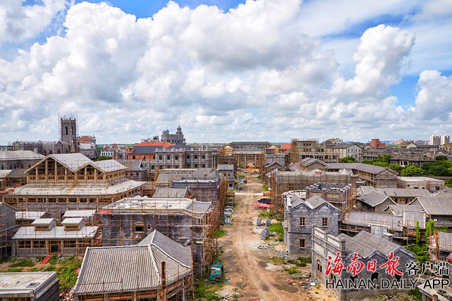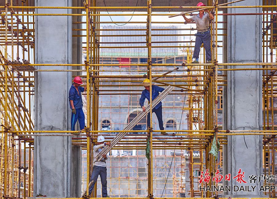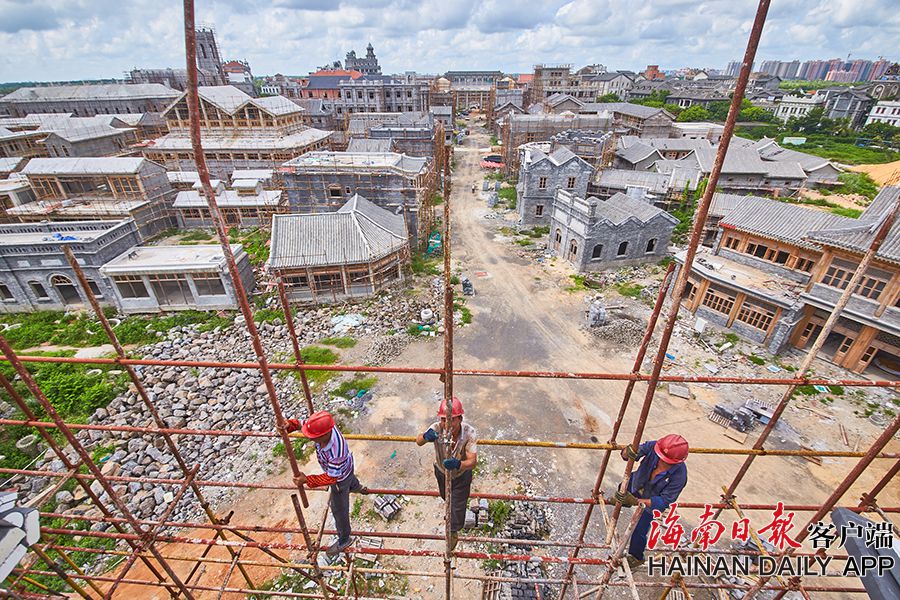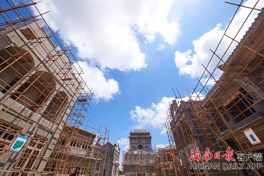 2019年8月28日,??谟^瀾湖電影公社老北京風(fēng)情街施工現(xiàn)場(chǎng),工人們正搭設(shè)鋼架,以進(jìn)行隨后的立面裝飾工作。 據(jù)了解,電影公社老北京風(fēng)情街現(xiàn)已完成建筑砌體及抹灰工程,目前主要進(jìn)行建筑外立面裝飾工作,進(jìn)度已達(dá)70%,并計(jì)劃于2020年6月30日前完成整體園林及綠化工程,具備開(kāi)放展示條件。圖為:電影公社老北京風(fēng)情街施工現(xiàn)場(chǎng)全貌。(海南日?qǐng)?bào) 見(jiàn)習(xí)記者 封爍 攝)
