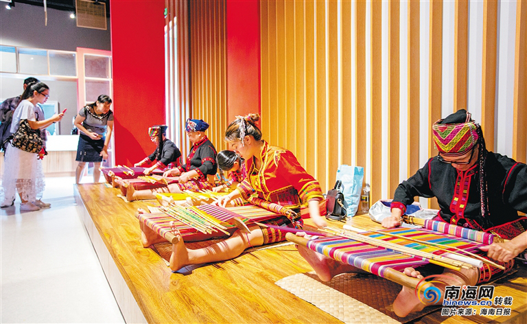 “活”起來的民族文化,遠遠不止傳統建筑風貌。如今在五指山的各個黎族村莊,可以和黎族歌手在一起唱上幾嗓,可以拿起織機親手織一織黎錦,也可以跟黎族婦女一起學釀山蘭酒、制作竹筒飯……游客們體驗到原汁原味的黎族風情,傳承了數千年的民族文化亦憑借生產性方式得以保護。