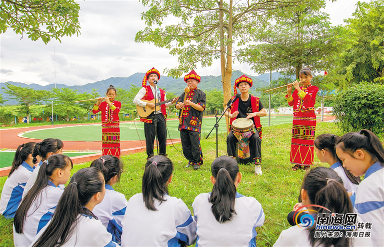 黎人文化公司在五指山思源實驗學校跟學生開展文化交流活動,傳承民族文化。