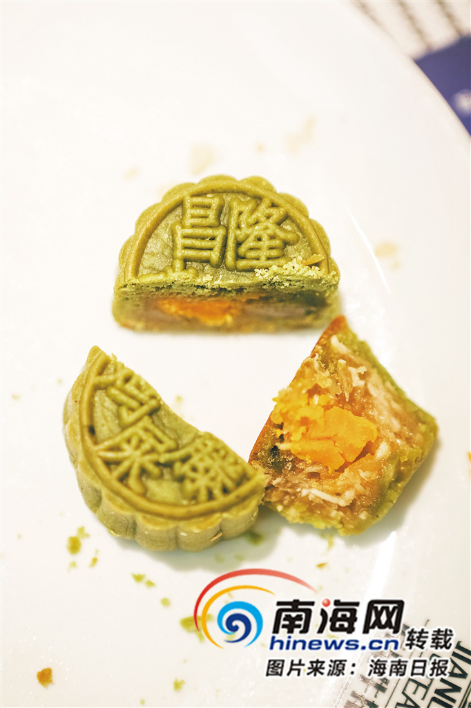 據介紹,2006年,昌隆月餅推出了雞屎藤月餅,把極具海南地方特色的雞屎藤與月餅相結合,通過把雞屎藤磨制成粉,再加工成餅皮,最后加入椰子餡和蛋黃,形成獨具特色的雞屎藤月餅。