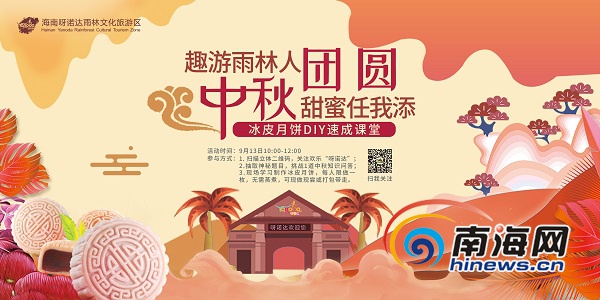 除系列優惠活動以外,呀諾達雨林文化旅游區還將于中秋節當日(9月13日)推出“冰皮月餅DIY速成課堂”,游客現場成功挑戰中秋趣味知識問答,即可成為“雨林新生”,通過自制月餅在花樣雨林中感受傳統文化歷久彌新的古典韻味,制造雨林中秋甜蜜記憶。
