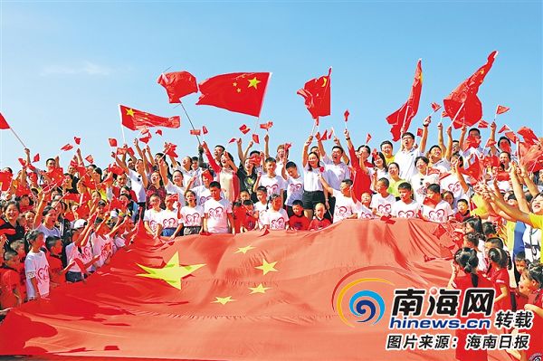 9月13日,“海上生明月,天涯共此時”小手拉大手千人齊唱《我和我的祖國》中秋快閃活動在三亞天涯海角游覽區舉行。 海南日報記者 武威 通訊員 范勇 攝