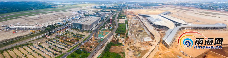 空中俯瞰海口美蘭國際機場,二期項目(圖右)穩步推進。南海網記者 劉洋攝