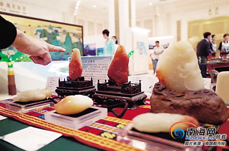 9月16日,國務院新聞辦公室舉行省(區、市)系列新聞發布會,昌江玉11件精美作品及原石是我省在國新辦新聞發布會發布大廳展示的重要內容之一。
