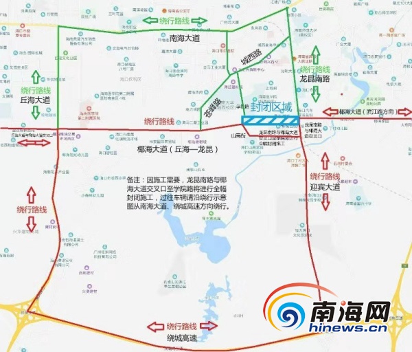 椰海大道與丘海大道交叉口封閉施工計(jì)劃為:9月24日21時(shí)30分至25日7時(shí)、9月26日21時(shí)30分至27日7時(shí)封閉交叉口東側(cè)半幅,屆時(shí)將影響椰海大道東西向及丘海大道南往北(即入城)方向通行;9月25日21時(shí)30分至26日7時(shí)、9月27日21時(shí)30分至28日7時(shí)封閉交叉口西側(cè)半幅,屆時(shí)將影響椰海大道東西向及丘海大道北往南(即出城)方向通行。