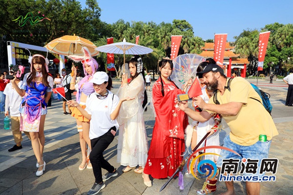 市民游客與cosplay玩家合影。五指山市旅文局供圖
