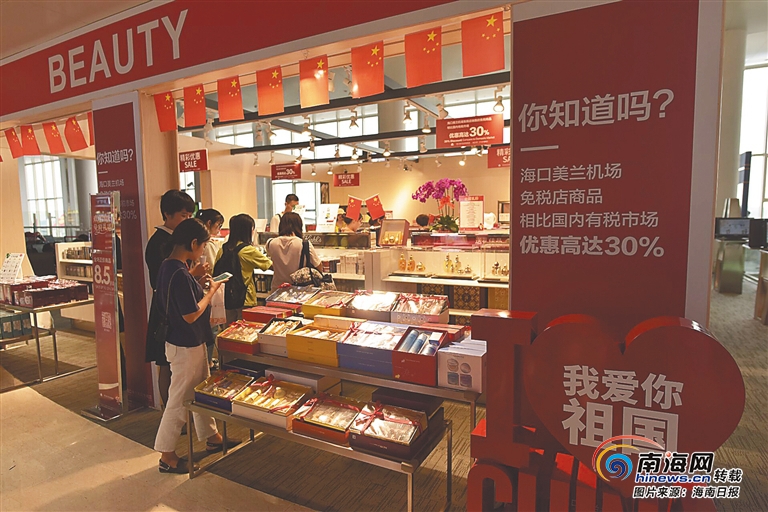 10月2日,在海口美蘭機場的免稅店,旅客在挑選商品。 海南日報記者 袁琛 攝