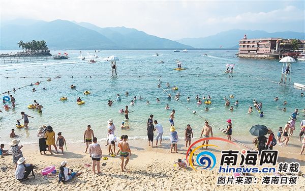 10月3日,在陵水分界洲島旅游區,游客在海灘上游玩。海南日報記者 武威 特約記者 童國強 攝