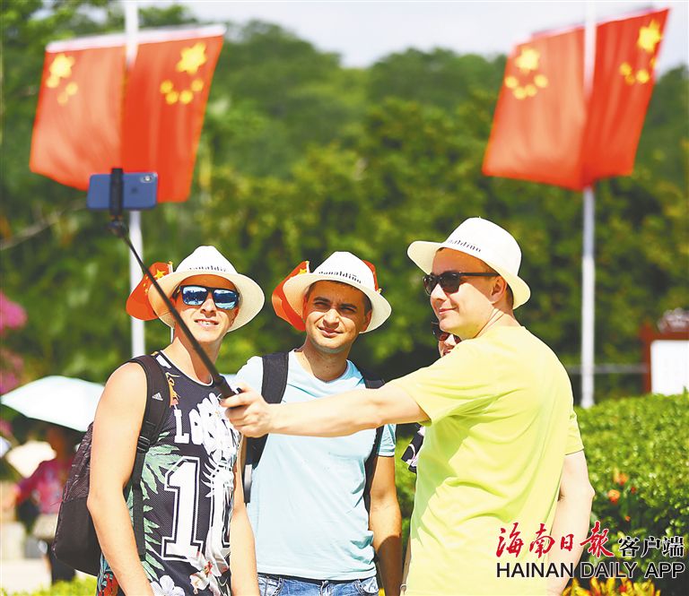 10月3日,外國(guó)游客在三亞南山景區(qū)參觀游覽。(海南日?qǐng)?bào)記者 武威 特約記者 陳文武 攝)