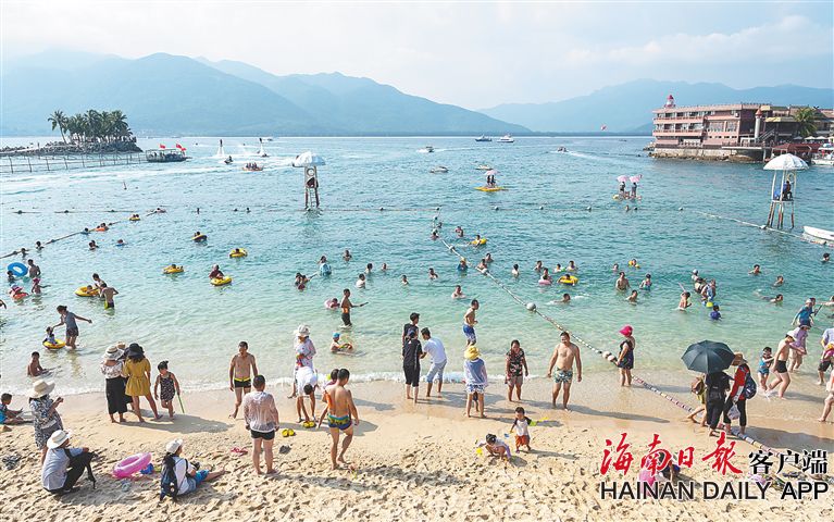 10月3日,在陵水分界洲島旅游區(qū),游客在海灘上游玩。(海南日?qǐng)?bào)記者 武威 特約記者 童國(guó)強(qiáng) 攝)