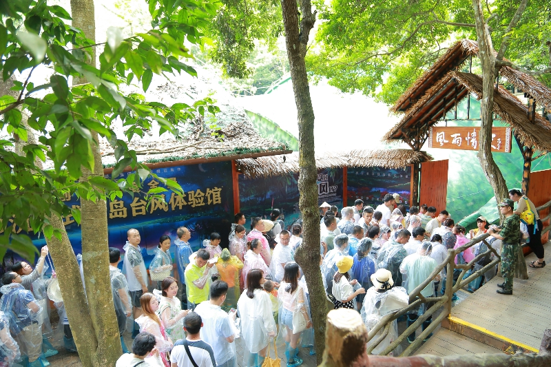 在《風雨情深》超感5D沉浸式臺風體驗館,身臨其境的觀感體驗吸引了游客紛至沓來,工作人員免費為游客提供雨衣、鞋套,在體驗結束后還準備了甜美可口的姜湯,景區的貼心服務暖了游客心、贏得游客贊。