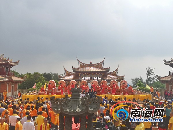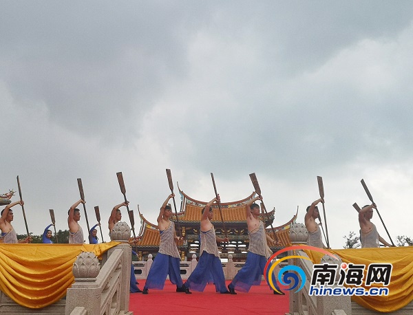儀式現場彩旗飄揚、鼓樂齊鳴,來自臺灣地區和海上絲綢之路沿線28個國家的宮廟代表、商會團隊及逾千名海內外信眾及嘉賓齊聚,場面熱鬧非凡。伴隨著悠揚激昂的樂曲,舞蹈表演《鼓舞》拉開活動序幕,海南民歌《久久不見久久見》、舞蹈《乘風破浪》等具有海南特色的表演輪番上演,增添了濃郁的活動氛圍。