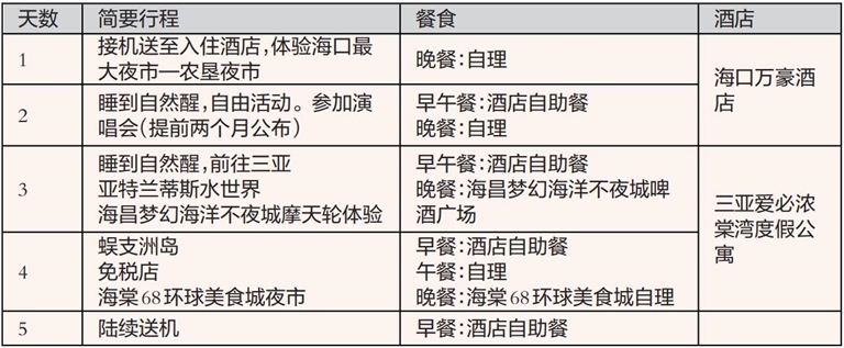 三亞宋城千古情→三亞天涯海角→三亞半山半島帆船學?!鷺窎|尖峰嶺→昌江海尾濕地公園→昌江棋子灣→儋州東坡書院→儋州石花水洞地質公園→儋州千年古鹽田→澄邁永慶寺→海口華誼馮小剛電影公社