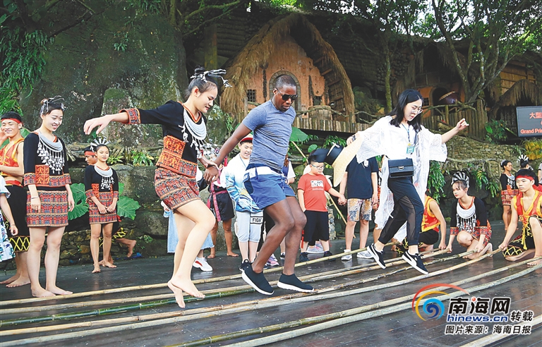 游客在海南檳榔谷黎苗文化旅游區游玩。 海南日報記者 王凱 通訊員 潘達強 攝