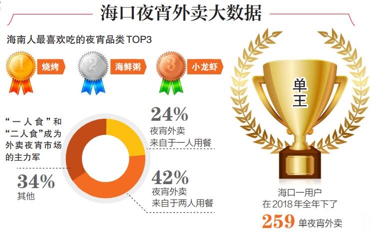 美團(tuán)大數(shù)據(jù)顯示,椰城夜宵“單王”去年下了259單,有人一頓外賣花了3321元