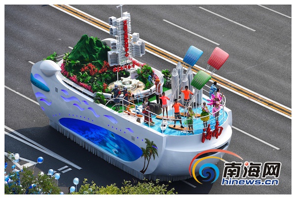 “美好新海南”號彩車最佳觀看效果圖示。(資料圖)