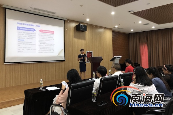 此次宣傳活動的主講嘉賓是海南省人力資源和社會保障廳SYB創業培訓師王榮衛,她首先向園區企業代表們詳細講解了《海南省就業政策》,從享受補貼資金的主體范圍、申請條件、補貼標準等方面介紹了海南省就業補貼的申請實際操作中需要關注的問題。