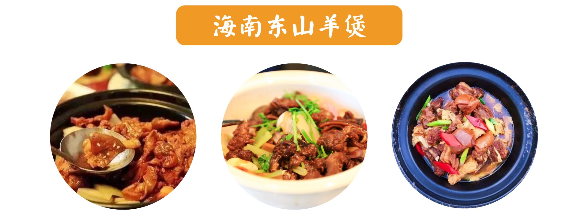 海南東山羊煲,是海南最負盛名的傳統“四大名菜”之一。這道菜用東山羊配以各種香料、味料,經過滾、炸、紋、蒸、扣等多種烹調法精制而成。東山羊是海南省唯一的地方優良山羊品種,受海南熱帶地區自然生態環境的影響,具有耐粗飼、耐高溫高濕、抗病力強、性成熟早、肉用性能好等優點。