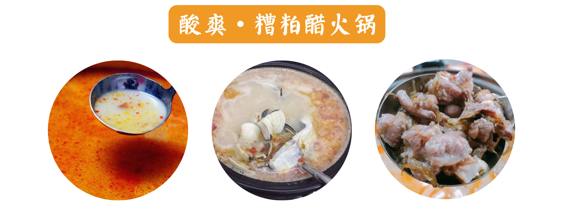 這道菜肴里,食材是可以應季選擇的,因人而異。將煮熟的海鮮或肉盛入碗中,舀起一勺熱乎乎的糟粕醋,淋在食材上即可。經火候嚴格控制后,煮熟的海鮮鎖住了其鮮味,而糟粕醋也仍舊保持著酸辣的原味。一口海鮮,一口糟粕醋,帶給食客的是口感上的溫柔雙擊。