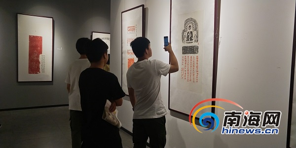 市民對(duì)展出作品拍照留念。南海網(wǎng)記者 胡麗齊 攝