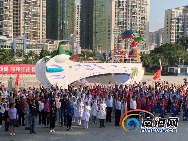 8日上午,海南省委宣傳部副部長張美文宣布慶祝中華人民共和國成立70周年“美好新海南”號受閱主題彩車赴海南各市縣巡展活動海口站正式開始。黨員干部、道德模范和市民群眾分批登上彩車參觀。
