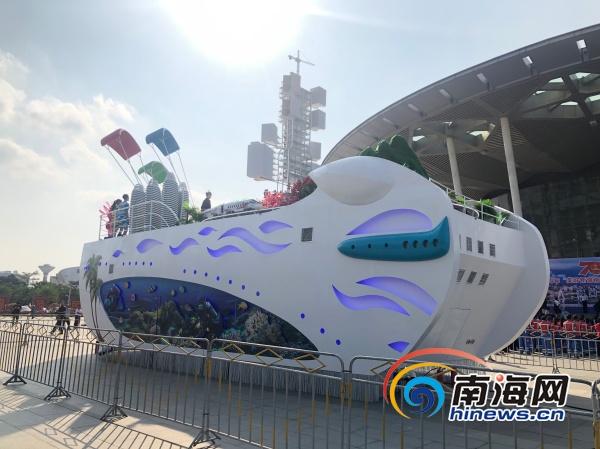 “美好新海南”號彩車蘊含著“可上九天攬月、可下五洋捉鱉”的寓意。南海網記者 周靜泊 攝