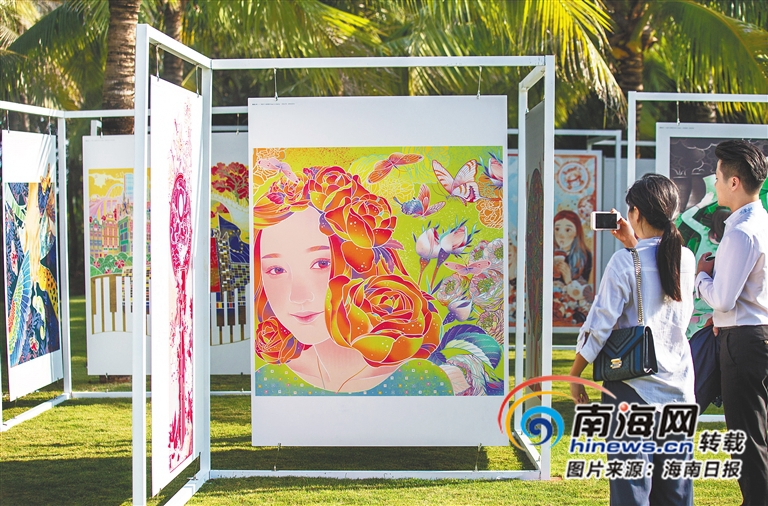 《中國日報》海外版頭版插圖作者李旻的插畫作品在書博會上展出。海南日報記者 武威 攝