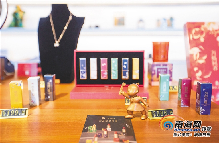 以故宮文物元素設計包裝的故宮口紅。海南日報記者 武威 攝