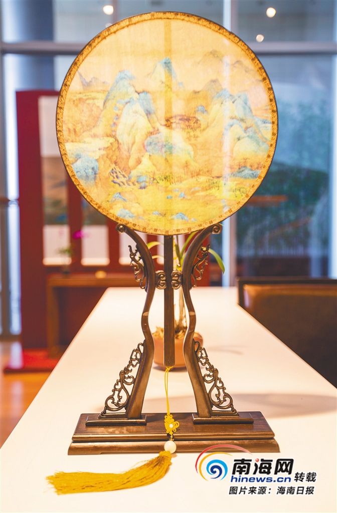 充滿古韻的《千里江山圖》團扇。海南日報記者 武威 攝