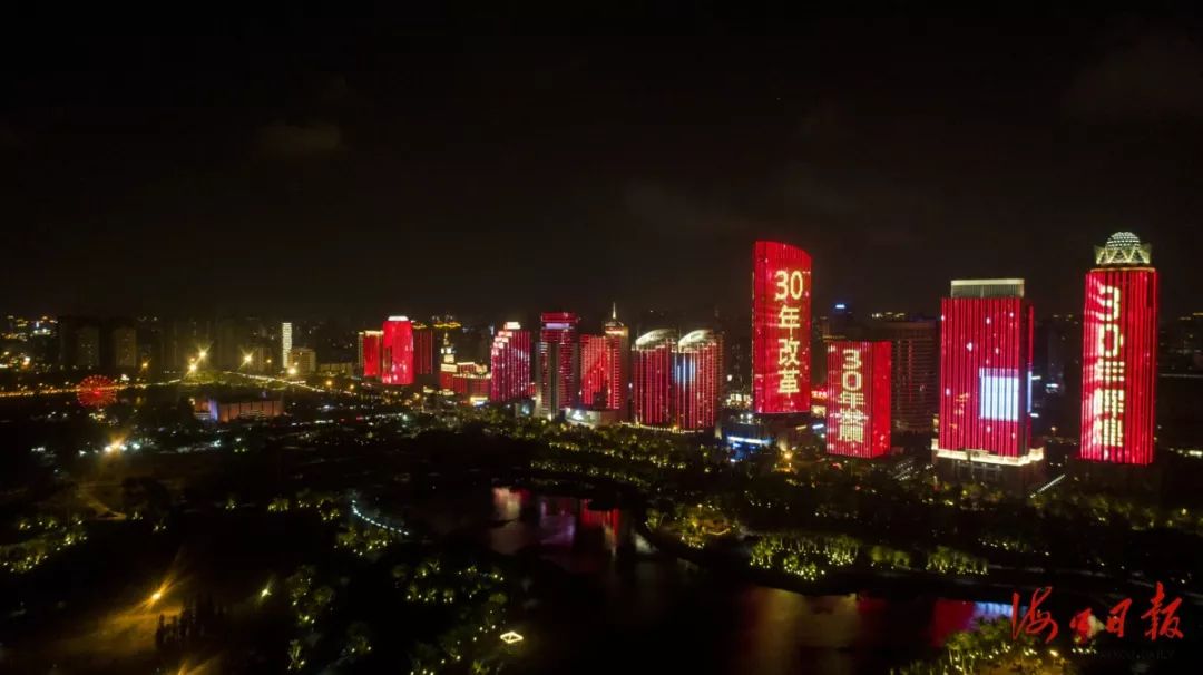 濱海大道燈光秀,展示海南新成就。海口日報記者 蘇弼坤 攝
