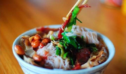酷粉一般現(xiàn)制現(xiàn)賣,一碗酷粉現(xiàn)制一般只需兩分鐘,將青菜扔進(jìn)湯鍋中煮一會,用撈爪將米粉條放進(jìn)湯鍋里熱一熱,然后倒進(jìn)碗中,按順序放入多種佐料,最后撒上一撮蔥花,添上滾湯就大功告成。一碗熱氣騰騰、香噴噴的樂東黃流酷粉下肚,當(dāng)真是“入口留醇香,回味悠遠(yuǎn)長”。