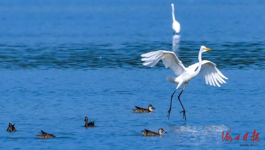 夏塘濕地鳥兒蹁躚。海口日報記者 康登淋 攝