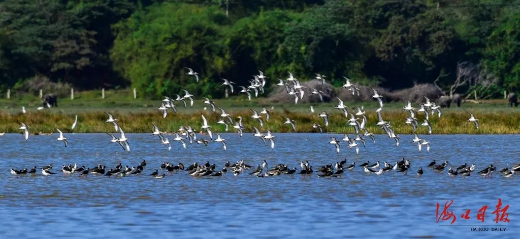 又到候鳥遷飛時,數不勝數的鳥兒飛過荒漠、越過高山,一路向南。海口優越的自然環境為候鳥遷徙提供了充足的食物和良好的棲息條件,成為許多候鳥遷徙的主要“落腳點”和“加油站”之一。氣勢浩大、場面壯觀的候鳥遷徙,吸引大批愛鳥人士的目光。他們走進海口濕地觀鳥,傾聽鳥兒的歌唱,追隨鳥兒的身影走進大自然。