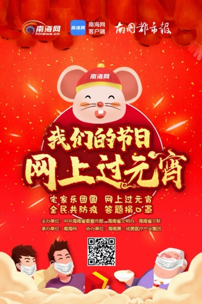 海南旅游頭條、南海網、南海網客戶端、南國都市報海口2月7日消息(記者 周靜泊)猜燈謎、看燈展、“換花”送祝福……每年正月十五,海南人民都會舉行各式各樣的活動與家人朋友共度元宵佳節。今年初,新型冠狀病毒感染的肺炎疫情在全國蔓延,少出門、不聚會、戴口罩、勤洗手等防疫知識已深入人心。但,元宵節我們還是一樣過!即日起,海南省委宣傳部、省文明辦、海南省文聯聯合推出 “我們的節日·網上過元宵”活動,讓全省人民宅家樂團圓、網上鬧元宵,“換花”為親朋好友和奮戰在抗疫一線的工作人員送祝福,答題抽獎還能為一線的醫護人員捐出口罩。網友通過南海網微信公眾號菜單欄,客戶端,或是掃描文末二維碼即可參與 “我們的節日·網上過元宵”活動,網上鬧元宵。
