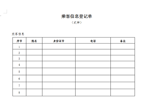 (三)乘客須持身份證乘車并配合司乘人員做好信息登記,填寫乘客信息登記單(附件3),否則司乘人員將拒絕其乘車。