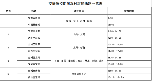 2、疫情防控期間農(nóng)村客運(yùn)線路一覽表
