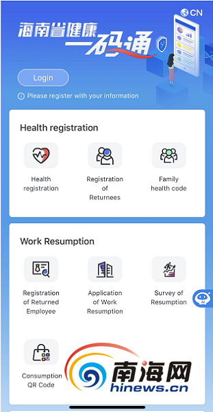 進(jìn)入“海南健康碼”首頁(yè)后,可自由切換中、英文版面,進(jìn)行健康碼的申領(lǐng),填寫(xiě)用戶信息和健康相關(guān)信息,并承諾所填信息真實(shí)有效,申領(lǐng)成功后可正常使用健康碼的其他場(chǎng)景功能、如健康打卡、復(fù)工復(fù)產(chǎn)、通行登記等。