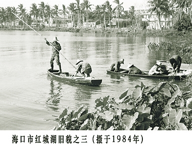 “你瞧,這里南部緊靠府城核心區(qū),北部是加速崛起的海口市,海南島上最早的公路——海府路離紅城湖不到3公里的距離。”翻開地圖,鄭家和回憶道,到上世紀(jì)90年代,銀行、醫(yī)院、學(xué)校、餐館等紛紛在湖周落地。