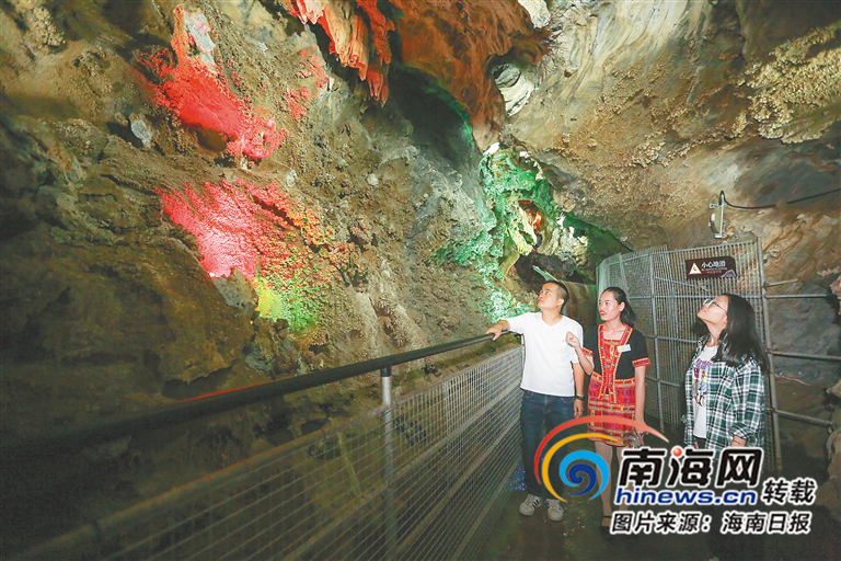 1月20日,在海南儋州石花水洞地質公園,導游為游客講解溶洞的奇石知識。目前,該景區正全力做好開業前的準備工作。海南日報記者 袁琛 攝