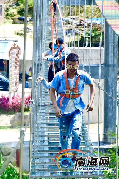 游客在紅峽谷景區體驗步步驚心旅游項目。景區供圖