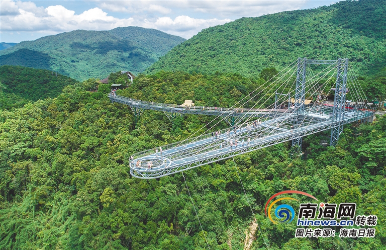 海南呀諾達(dá)雨林文化旅游區(qū)的玻璃觀景平臺(tái)上,游客在觀賞熱帶雨林美景。武昊 攝