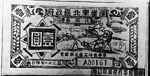 為了對抗日軍不良用心,穩(wěn)定金融物價,1942年,瓊崖東北區(qū)抗日民主政府發(fā)行了約20萬元的瓊崖東北區(qū)政府代用券。1元代用券兌換1元光洋,在根據(jù)地與光洋同樣使用,得到了當(dāng)?shù)匕傩盏拇罅χС帧_@是共產(chǎn)黨人在瓊崖地區(qū)最早發(fā)行的一種貨幣。
