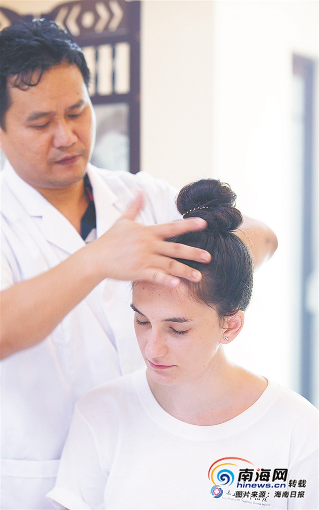 ?俄羅斯游客在三亞市中醫院感受中醫療養魅力。 武昊 供圖